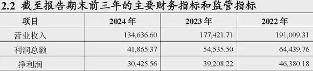 从达州银行自身来看,2024年实现营收13.46亿元,取得总利润4.19亿元、净利润3.04亿元,就近三年看呈现持续下滑态势。