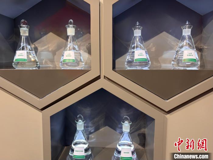 5月16日,中石油克拉玛依石化有限责任公司展厅内摆放的部分精制油品标本。 中新社记者关雪昭摄